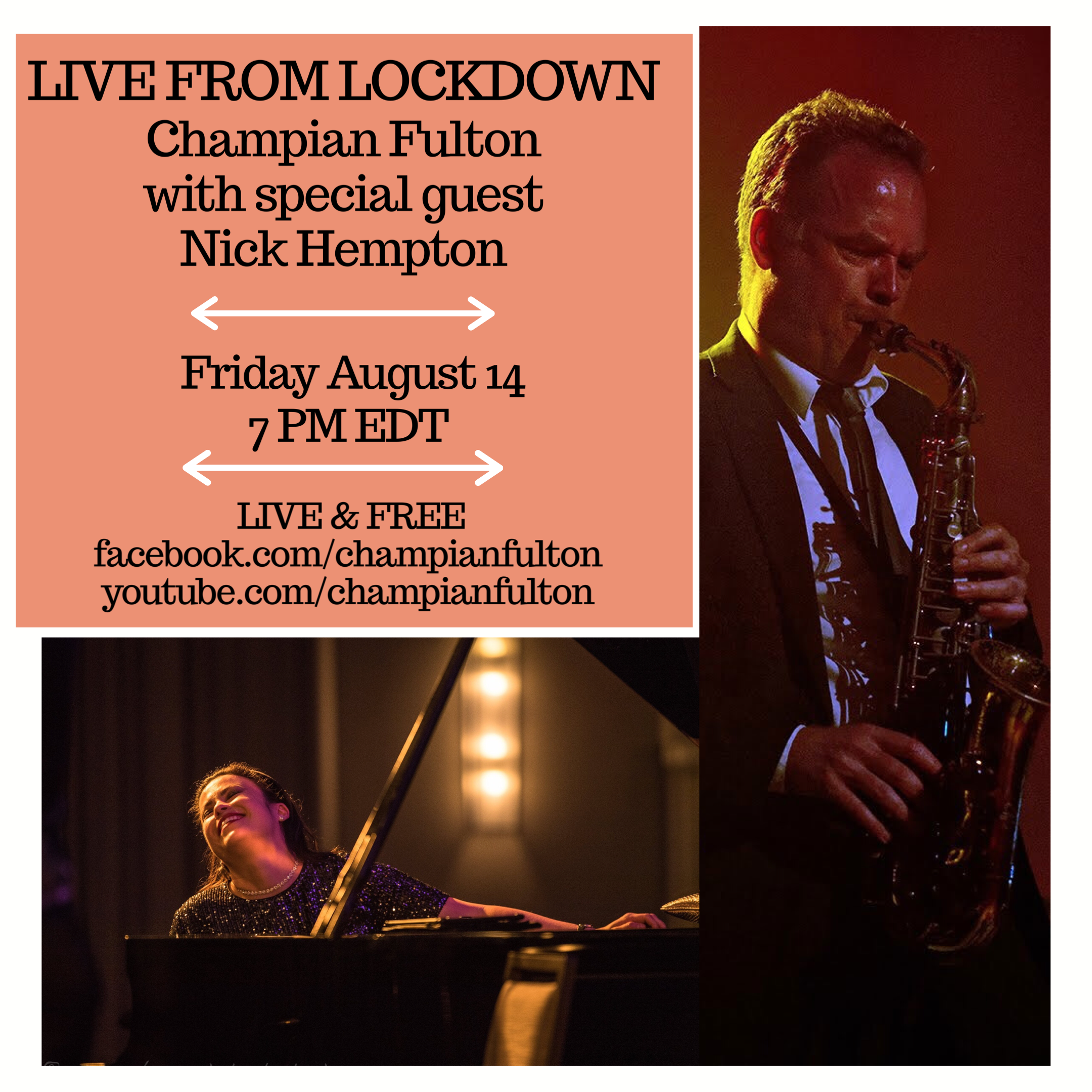 Date night! Streaming live from lockdown in duo with pianist/vocalist Champian Fulton. Join us on Facebook or Youtube!
